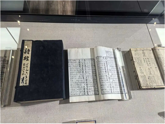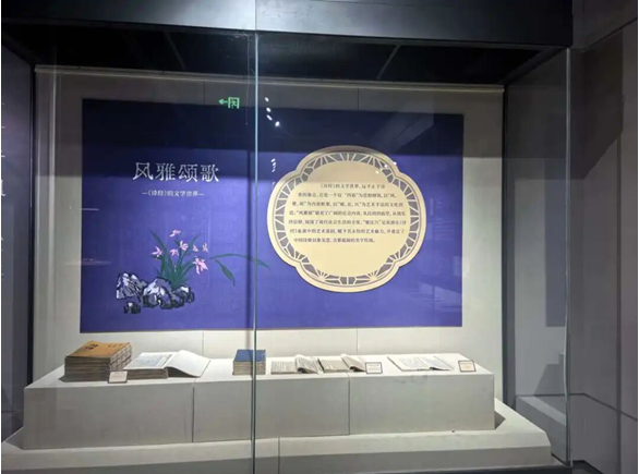 本次展览以“千年遗响、风雅颂歌、礼乐华章、诗教绵长”为四大核心单元,通过历代《诗经》古籍珍品与实物展品,构建起脉络清晰的文化展示体系。