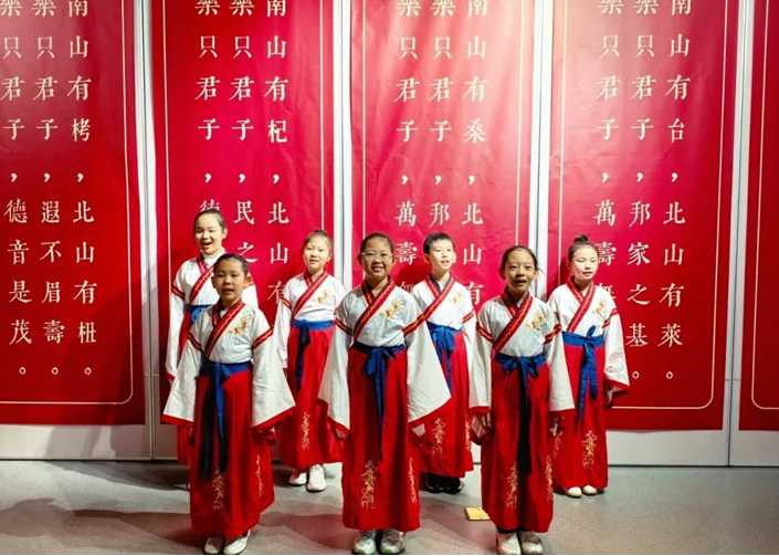 在讲解员的引导下,师生代表依次参观各展区,从跨越竹简、石刻、抄本、刻本的文献流传脉络,到婚嫁、宴饮、祭祀中的礼乐密码,再到沧州与《诗经》的千年渊源,珍贵古籍与详实讲解让孩子们直观感受“风雅颂”的文化魅力。