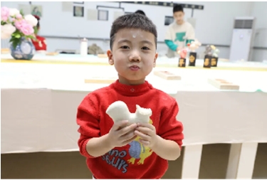 捏出身子、剪出龙鳞、粘上龙眼、贴上胡须......跟着张老师一步步有模有样的开始“创作”,面团在孩子们的手中变成了一条条独一无二的吉祥龙,“你这只小龙叫什么名字啊?”“它叫做塔博士”“你的呢?”“我的这只叫八戒”,童趣与非遗在此时碰撞出了新的火花,大家在动手过程中,也感受到了非遗文化的乐趣。