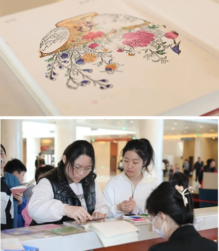 当集齐12枚印章后,大家迫不及待地拿着早已备好的A4纸来到服务台,打卡沧博的花朝套色印章。每盖一层都充满惊喜,而当最后一块印章落下,馆藏文物“粉彩轧道开光山水纹碗”仿佛焕发出新的生机,碗壁上的花朵似乎在春日的暖阳中悄然绽放,为这场文化盛宴增添了别样的色彩。