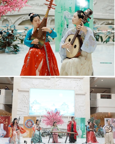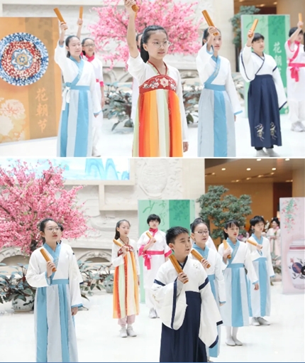 活动现场,琵琶、二胡、古琴、阮等传统乐器的和谐共鸣,为《兰亭序》这首古典名曲注入了新的灵魂。而车站小学孩子们清脆悦耳的歌声,将《春日》和《江畔独步寻花》这两首古诗演绎得如诗如画,仿佛一幅幅美丽的山水画在眼前徐徐展开。