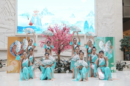 舞台上,12位少年手持折扇,在春风的轻拂下翩翩起舞。他们相约共赴“春山”,一同赏红、点茶、焚香、放纸鸢,生动展现了花朝佳节的欢乐与美好。这次活动不仅是沧州市博物馆与解放路小学馆校合作的又一次创新实践,更是通过歌舞这一形式,让孩子们亲身感受并领悟传统文化的独特魅力。