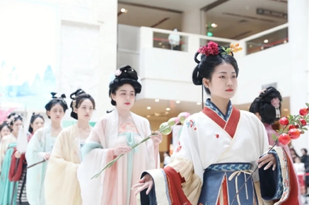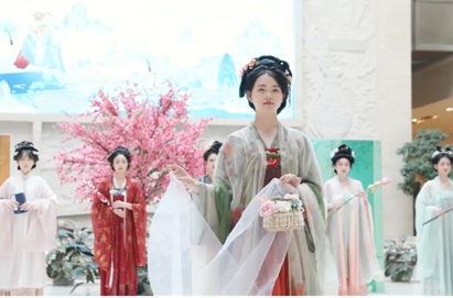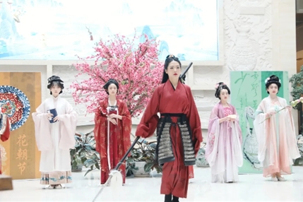 随着音乐的缓缓流淌,12位花神逐一登场。她们各自代表着一年中的不同月份,或温婉贤淑,或英姿飒爽。她们身着精美的传统服饰,妆造考究,仿佛是从古代画卷中走出的仙女,将古代传统服饰之美展现得淋漓尽致。