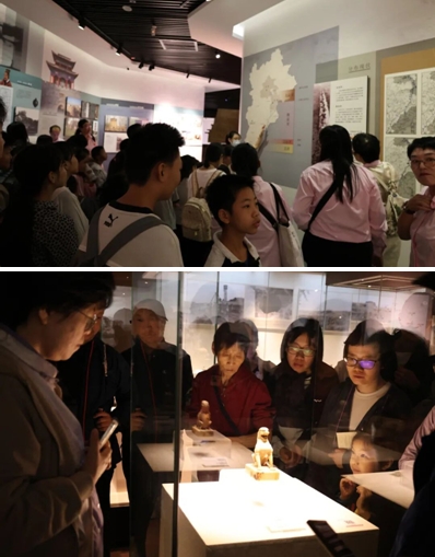 双节期间,本馆共开放11个展厅供游客参观,《明清重镇—秦皇岛长城文物专题展》与《花好月圆—沧州工笔画运河风情圆光作品展》作为临时展览亦吸引众多游客前来打卡拍照。
