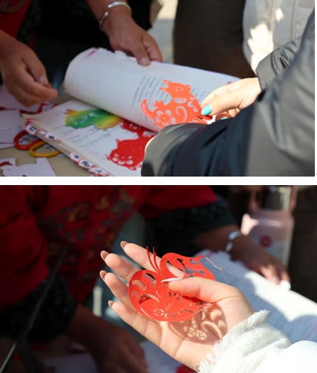 学生们跟随非遗剪纸老师现场学习,纷纷动手尝试,剪出一幅幅栩栩如生的剪纸作品。这一过程不仅激发了学生们对非遗文化的兴趣,更培养了他们了解、认同和传承非遗文化的热情。