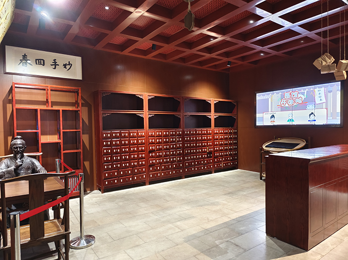 “济世沧海——沧州中医药文化展”通过“医脉相承”“守正创新”“中医药文化体验”三个部分,展示了沧州历史上扁鹊、刘完素、张锡纯三位杰出的中医名家及其医学思想,介绍了近现代沧州中医药的发展状况,并通过互动多媒体装置让大家感受中医的奥秘。