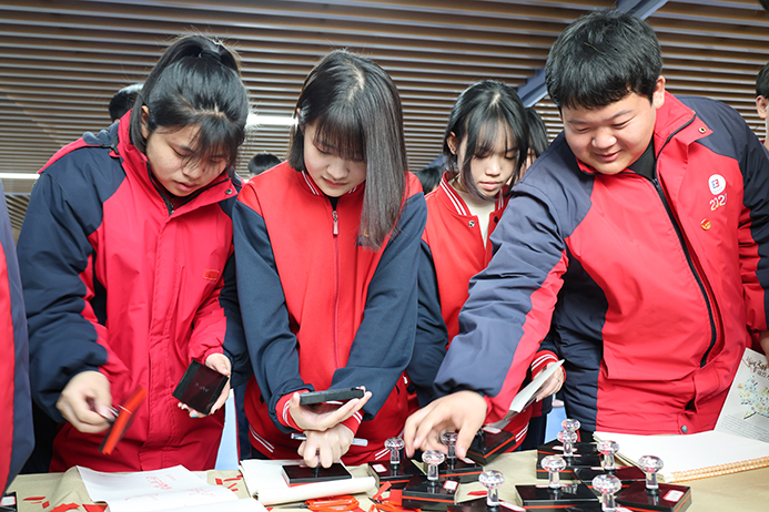 非遗印章体验区前,师生们手持非遗印章,盖下清晰印记,在动手实践中真切触摸非遗温度,感受传统技艺的独特魅力。为更好的开展今后的非遗宣传活动,我们还在活动结束后向师生们发放了调查问卷,为优化后续的“六进”做重要参考。