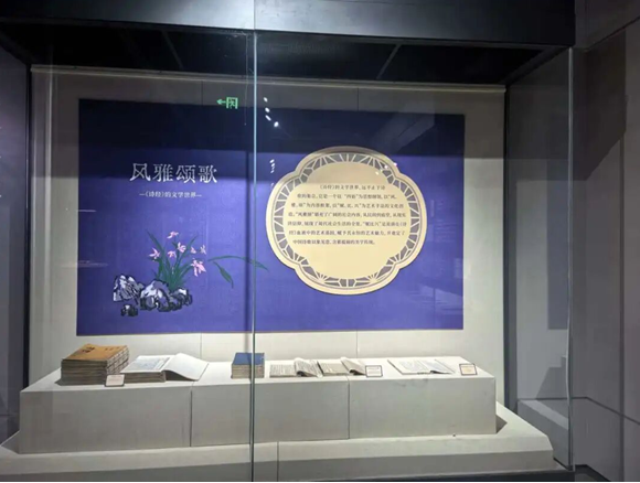 本次展览以“千年遗响、风雅颂歌、礼乐华章、诗教绵长”为四大核心单元,通过历代《诗经》古籍珍品与实物展品,构建起脉络清晰的文化展示体系。