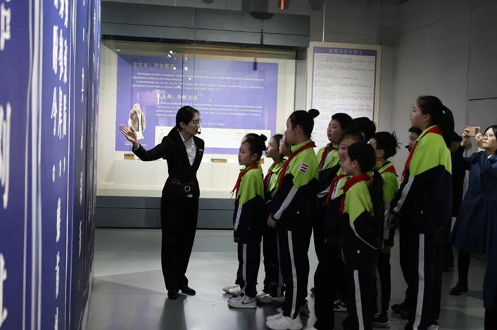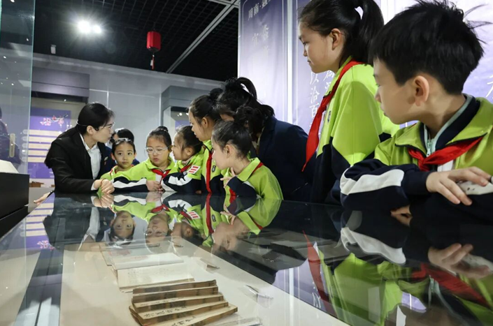 在讲解员的引导下,师生代表依次参观各展区,从跨越竹简、石刻、抄本、刻本的文献流传脉络,到婚嫁、宴饮、祭祀中的礼乐密码,再到沧州与《诗经》的千年渊源,珍贵古籍与详实讲解让孩子们直观感受“风雅颂”的文化魅力。